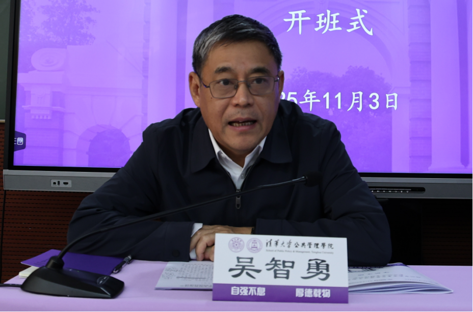 随后,湖州市委副书记、社工部部长、政法委书记吴智勇作动员讲话。他表示,湖州作为习近平生态文明思想的萌发地和实践地,肩负着建设生态文明典范城市的光荣使命。当前,湖州正处于高质量发展关键阶段,生态文明建设既是根本路径,也是城市核心竞争力所在。此次研讨班在清华公管学院举行,既是一次学习先进理念、拓展战略眼界的宝贵机会,也是一次对标一流、深化自我提升的重要过程。吴智勇强调,学习的目的在于实践。希望各位领导干部珍惜这次学习机会,静下心、沉下身,认真思考如何将课堂所学转化为推动湖州发展的新思路、新举措,切实把学习成果落实到生态文明建设和各项具体工作中。他表示,湖州市委市政府一如既往支持干部教育研讨工作,持续强化学习型政府建设,不断提升领导干部推动高质量发展的能力水平。最后,他代表湖州市委,向中国国际发展知识中心和清华公管学院的辛勤组织与专业支持表示衷心感谢,并预祝本次专题研讨班取得丰硕成果、圆满成功。