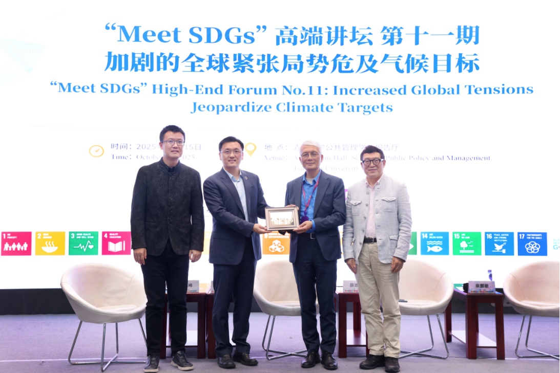 2025年10月15日晚上,由清华大学全球可持续发展研究院(清华SDG研究院)主办的“Meet SDGs”高端讲坛第11期—陈德亮:加剧的全球紧张局势危及气候目标”在公共管理学院一层报告厅成功举办。